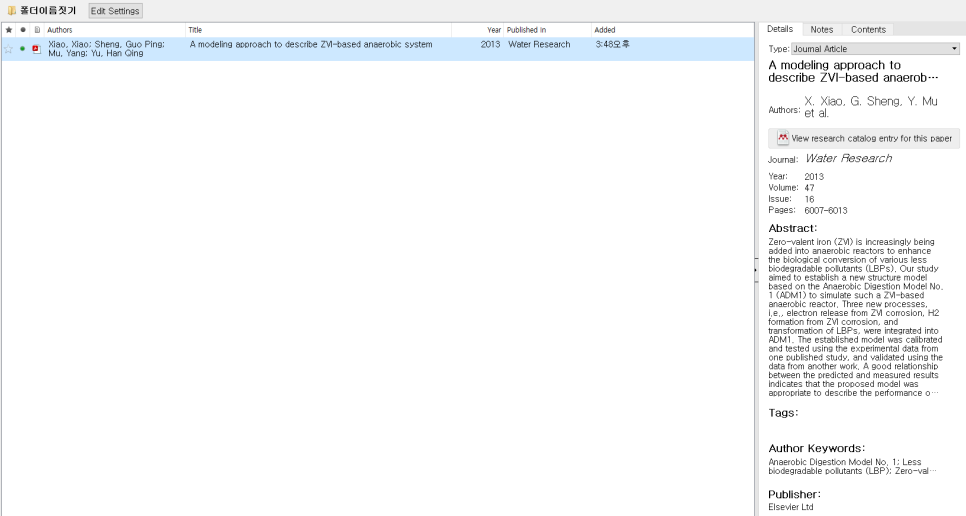 그 항목을 선택하면 오른편에 서지정보를 확인할 수 있는데, 오른쪽 창에서 바로 서지정보를 수정할 수 있습니다.