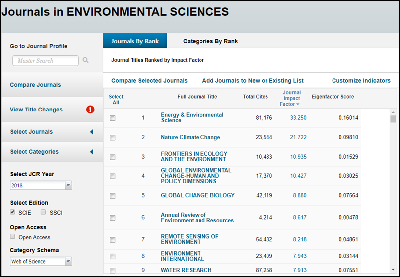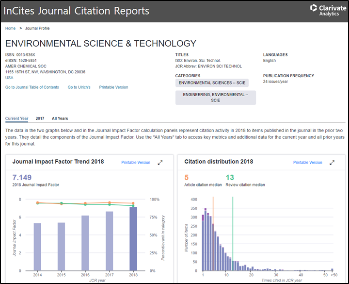 JCR 사이트에 접속하여 원하는 저널의 이름을 검색한다. 특정 저널을 검색해도 좋지만 한 분야에서 저널의 Ranking을 확인하는 데도 유용하다. 매년 Ranking이 바뀌므로 연도별로 데이터를 확인할 수 있다.