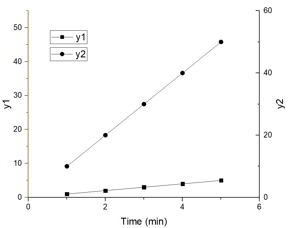 설정이 완료되면 아래처럼 각 y축 당 1개의 y값을 가지고 있는 그래프를 얻을 수 있습니다.