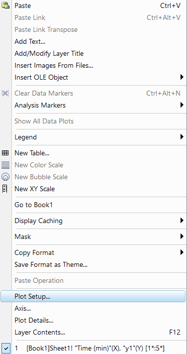 새로운 y축에 y값을 옮겨주려면 그래프에 오른쪽 마우스를 클릭하고 Plot Setup을 클릭합니다.
