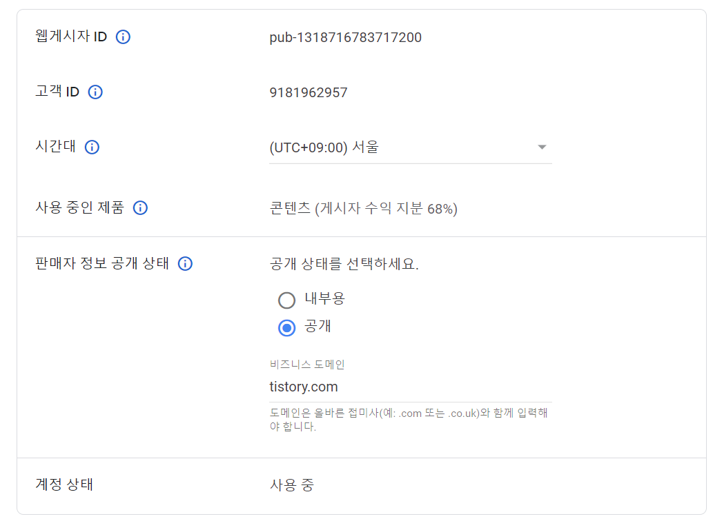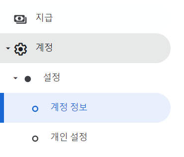 구글 애드센스 홈페이지의 계정 - 계정 설정 탭에 들어갑니다.