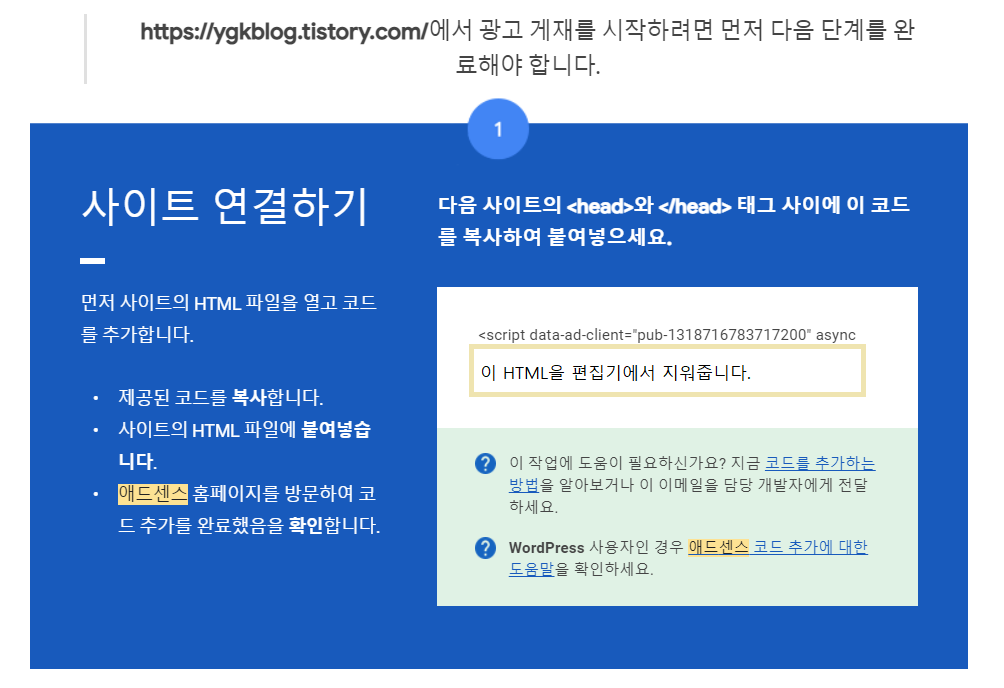처음 애드센스 신청을 위해 받았던 코드를 HTML 편집기에서 지워줍니다.